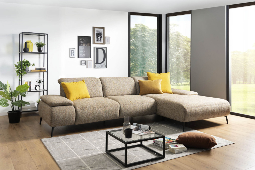 Dieses stilvolle Ecksofa vereint modernes Design mit individueller Anpassung. Gestalten Sie es nach Ihren Vorstellungen und wählen Sie zwischen verschiedenen Polsterungen, Sitzoptiken und Materialien. Auch die Fußfarben können Sie individuell anpassen, um ein harmonisches Gesamtbild zu schaffen. Mit seiner eleganten Vielseitigkeit wird dieses Sofa zum Herzstück Ihres Wohnraums und lädt mit seinem hohen Komfort zum Entspannen ein. Ein Möbelstück, das Ästhetik und Funktionalität perfekt verbindet.