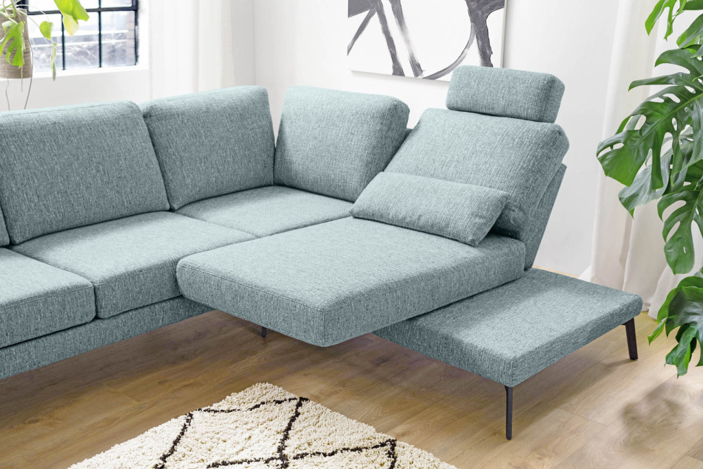 Das Ecksofa der Marke Stilecht ist ein hochwertiges Möbelstück, das nicht nur durch sein ansprechendes Design besticht, sondern auch mit einer Vielzahl von praktischen Funktionen überzeugt. Mit seinem Flachgewebe bietet es eine angenehme Haptik und garantiert einen hohen Sitzkomfort. Ein besonderes Highlight dieses Sofas sind die variabel einstellbaren Rückenlehnen. Diese lassen sich individuell anpassen, sodass jeder Nutzer mühelos seine optimale Sitzposition findet - unabhängig von Körperform und Größe. So wird das Sitzen auf diesem Sofa zu einem wahren Genuss und fördert gleichzeitig eine gesunde Körperhaltung. Eine weitere Besonderheit des Stilecht Ecksofas ist die Drehsitzfunktion. Die Sitzfläche lässt sich um 90° drehen, wodurch im Handumdrehen eine ideale Fläche zum Ausstrecken entsteht. Haben Sie zwei Drehsitze nebeneinander, können diese beidseitig eingedreht werden und schaffen so eine gemütliche Liegefläche. Perfekt für entspannte Abende vor dem Fernseher oder ausgedehnte Lesestunden. Mit diesem Sofa erwerben Sie nicht nur ein stilvolles Wohnaccessoire, sondern zugleich ein flexibles Möbelstück, das sich Ihren Bedürfnissen perfekt anpasst. Lassen Sie sich von der Qualität und Funktionalität des Stilecht Ecksofas überzeugen!