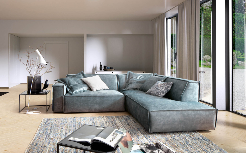 Durch exklusive Extras, wie Kissen, ein Zwischenhocker oder ein freistehenden Longchair haben sie die Möglichkeit Ihr Sofa zu perfektionieren. Auch die Stoff- und Lederfarben können Sie individuell und passend zu Ihrer Einrichtung abstimmen. Damit wird Ihr neues Sofa nicht zur zu Ihrem Lieblingsstück, sondern gleichzeitig zu einem Unikat. Durch die Moderne Form und den gradlinigen Kanten wird dem Sofa ein cooler, lässiger aber auch eleganter Touch verliehen. Damit ist es in Ihrem Wohnzimmer ein echter Eyecatcher.