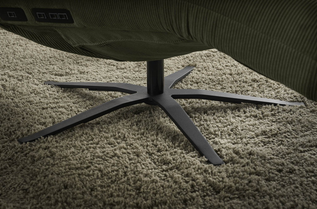 Cord, 88 % Polyester, 12 Polyacryl, Farbe oliv, Sternfuß drehbar schwarz matt, Sitzhöhe 45 cm, Sitztiefe 117 cm, manuelle Funktion, BHT ca. 82/53-115/156-205 cm
