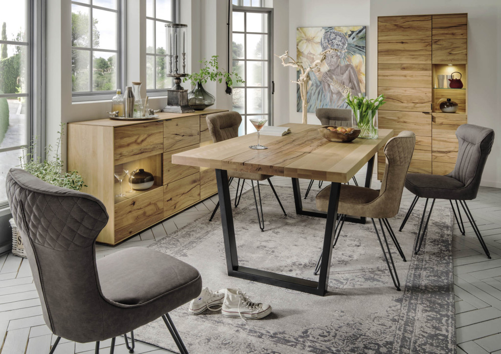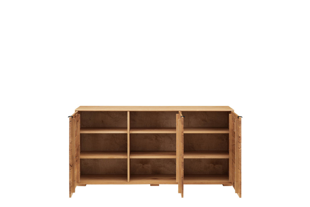 Dieses elegante Sideboard beeindruckt durch seine klare Linienführung und hochwertige Verarbeitung. Aus erstklassigem Massivholz gefertigt, fügt es sich harmonisch in unterschiedliche Wohnstile ein. Die drei Türen mit moderner Softclose-Technik gewährleisten ein leises und komfortables Schließen, während das großzügige Stauraumkonzept für Ordnung und Übersicht sorgt. Die natürliche Oberflächenbehandlung betont die ausdrucksstarke Holzstruktur und verleiht dem Möbelstück eine warme, zeitlose Ausstrahlung. Ein stilvolles Sideboard für anspruchsvolles Wohnen.